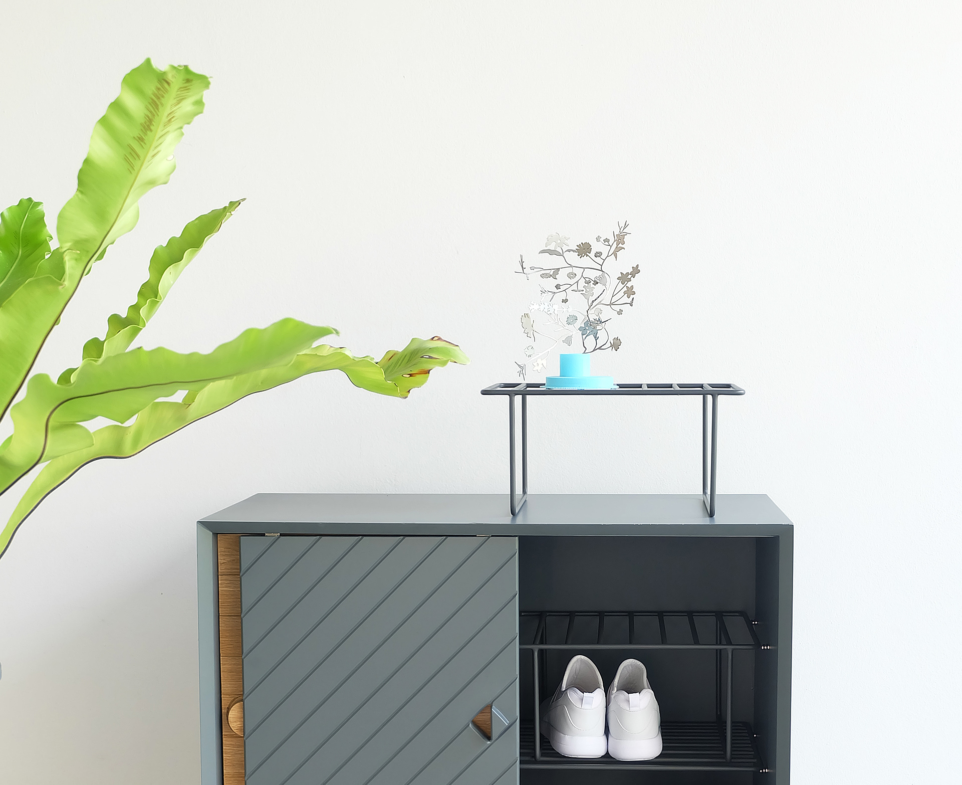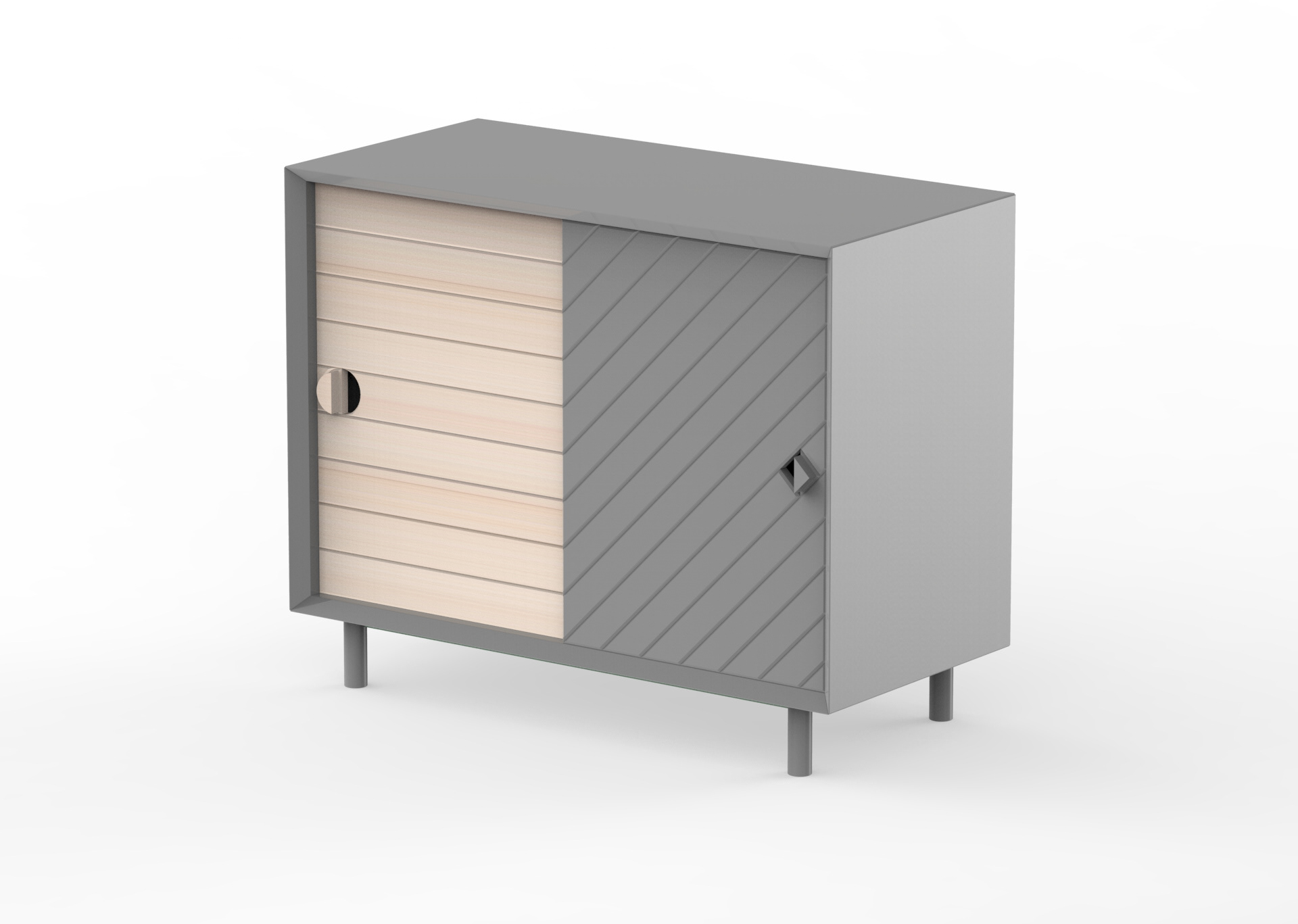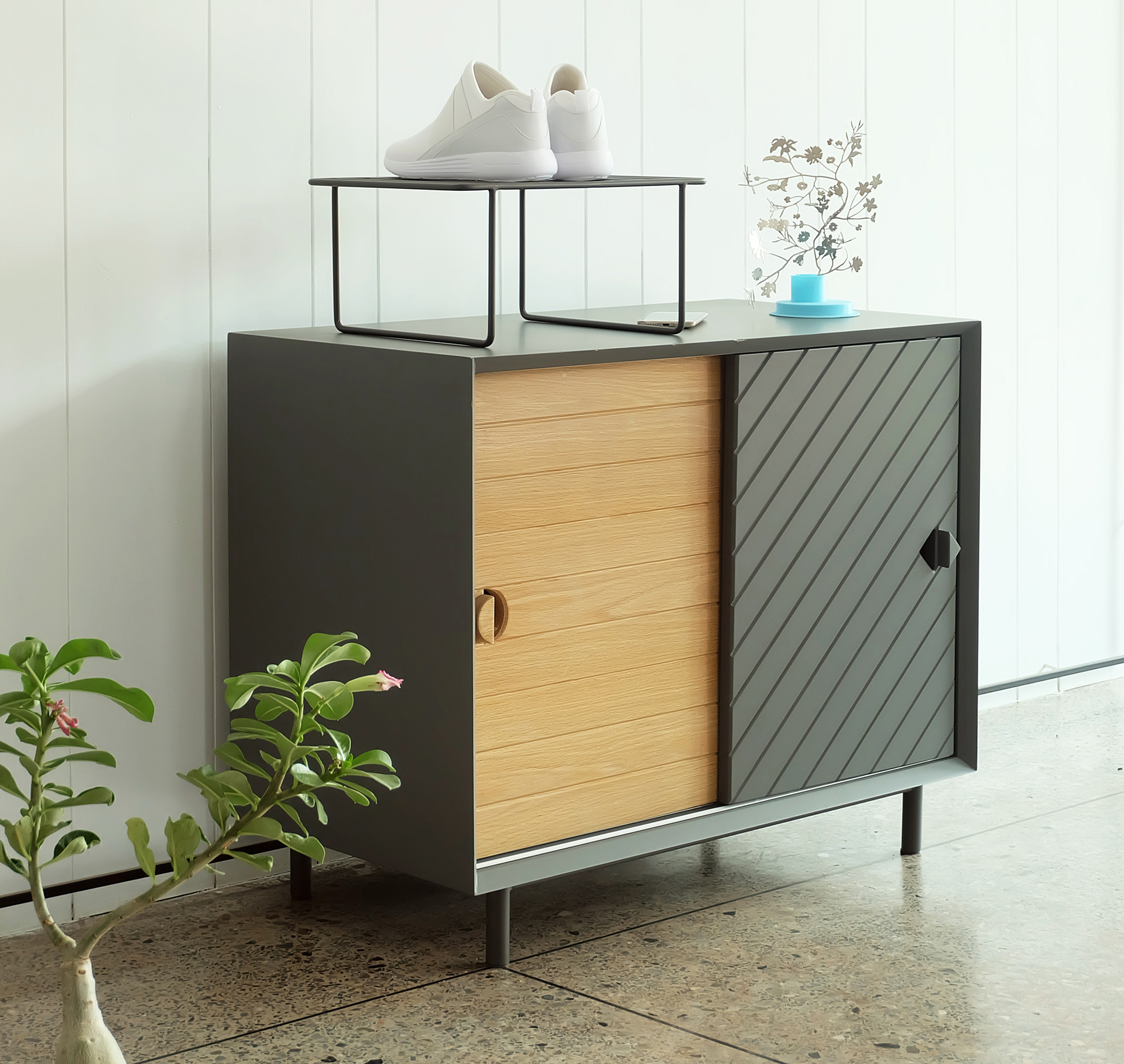 Reflection is a furniture collection focus on the storage, designed for Whoop Studio, based on the theme New Asian Minimalism. The starting point of this project is the symmetry and reflection that creates a complete geometrical shape by using the leftover cuts where the aesthetic becomes functional. The highlight of Reflection is reuse the waste to create a functional piece working as door handle and stopper at the same time. Company: Whoop