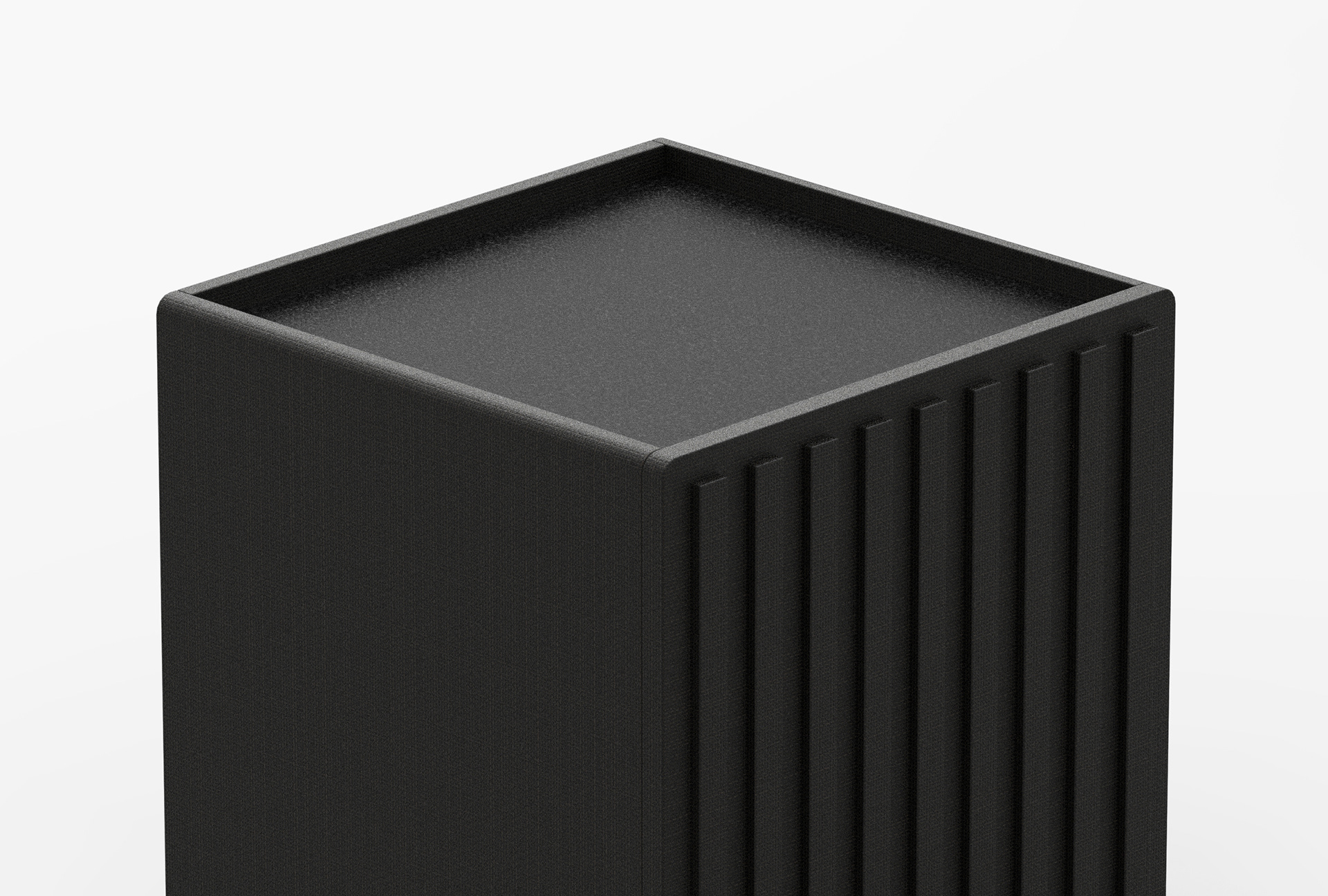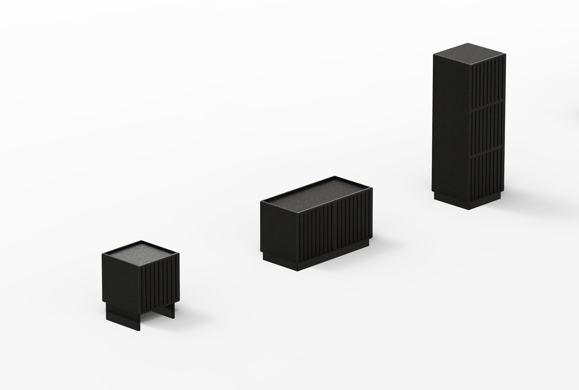 Doric Collection reflects the elegance and atemporality of stripes creating a pattern that become the icon of this new furniture collection. The main material used is solid wood with two tones Dark Black and Sakura Brown.