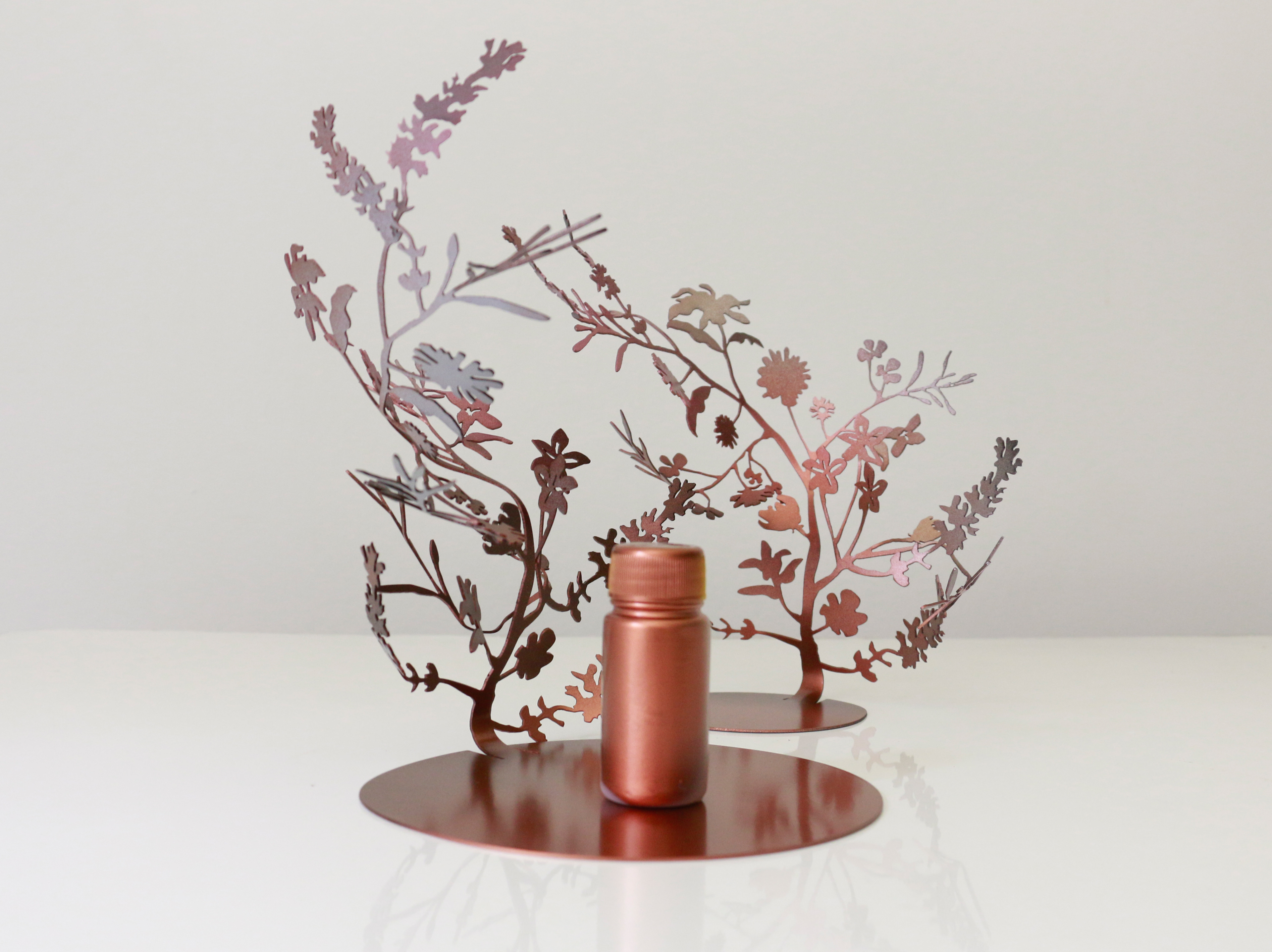 Garden is a Shelf Display, based on the 12 flowers and plants used in the process production to show the new Aromatherapy Collection. Company: Satira