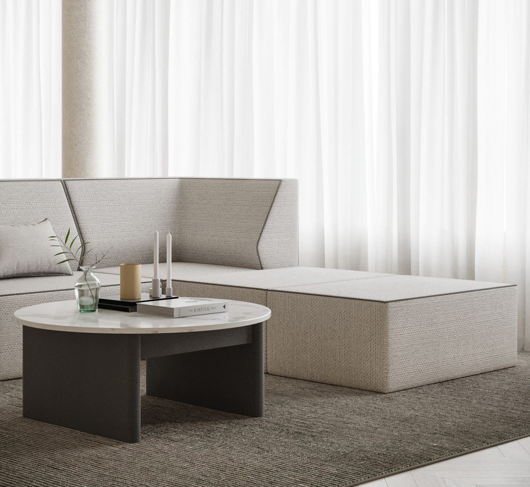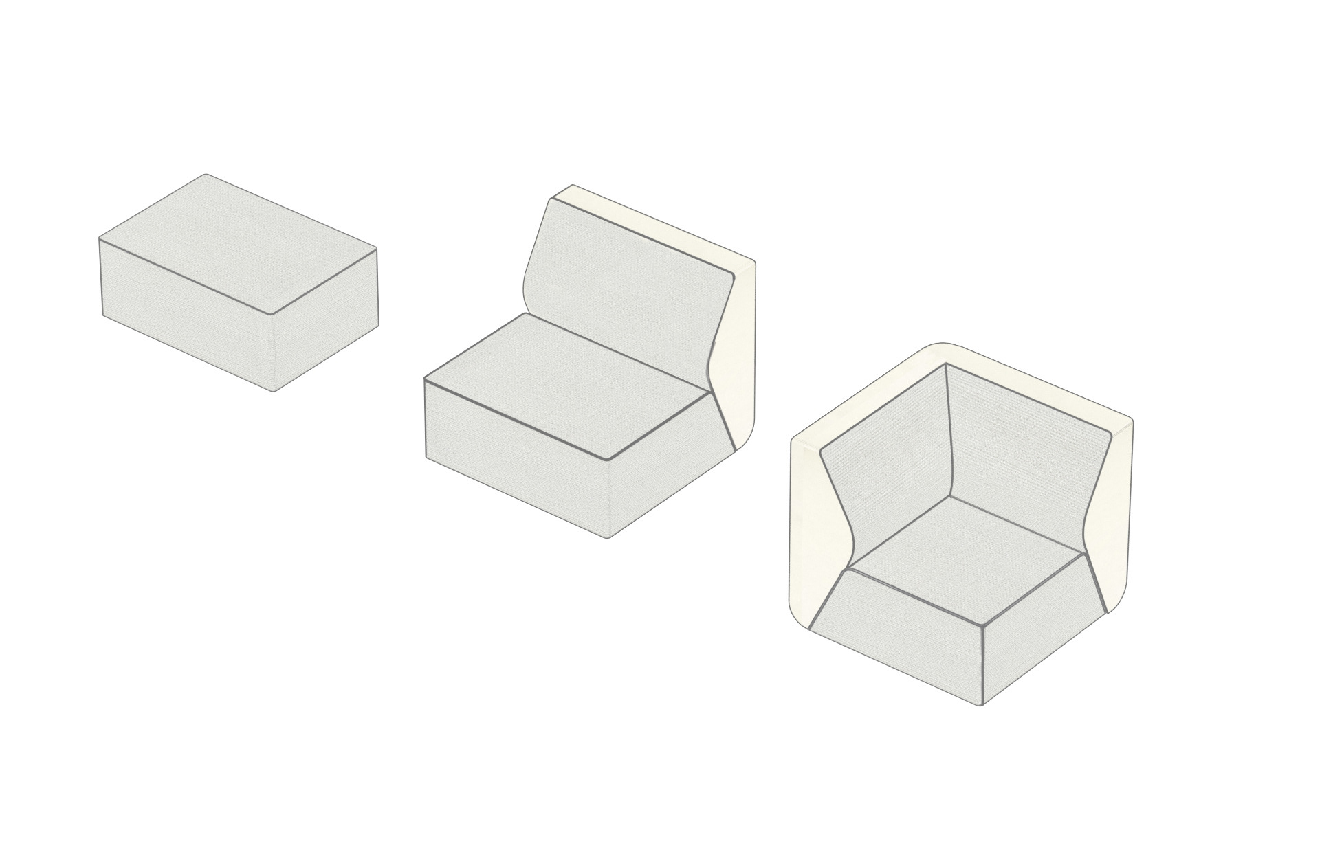 The final results turns to a modular system composed by 3 seating modules and 3 typologies of table, with the aim to create a luxury and unique interior matching every timeless lifestyle.