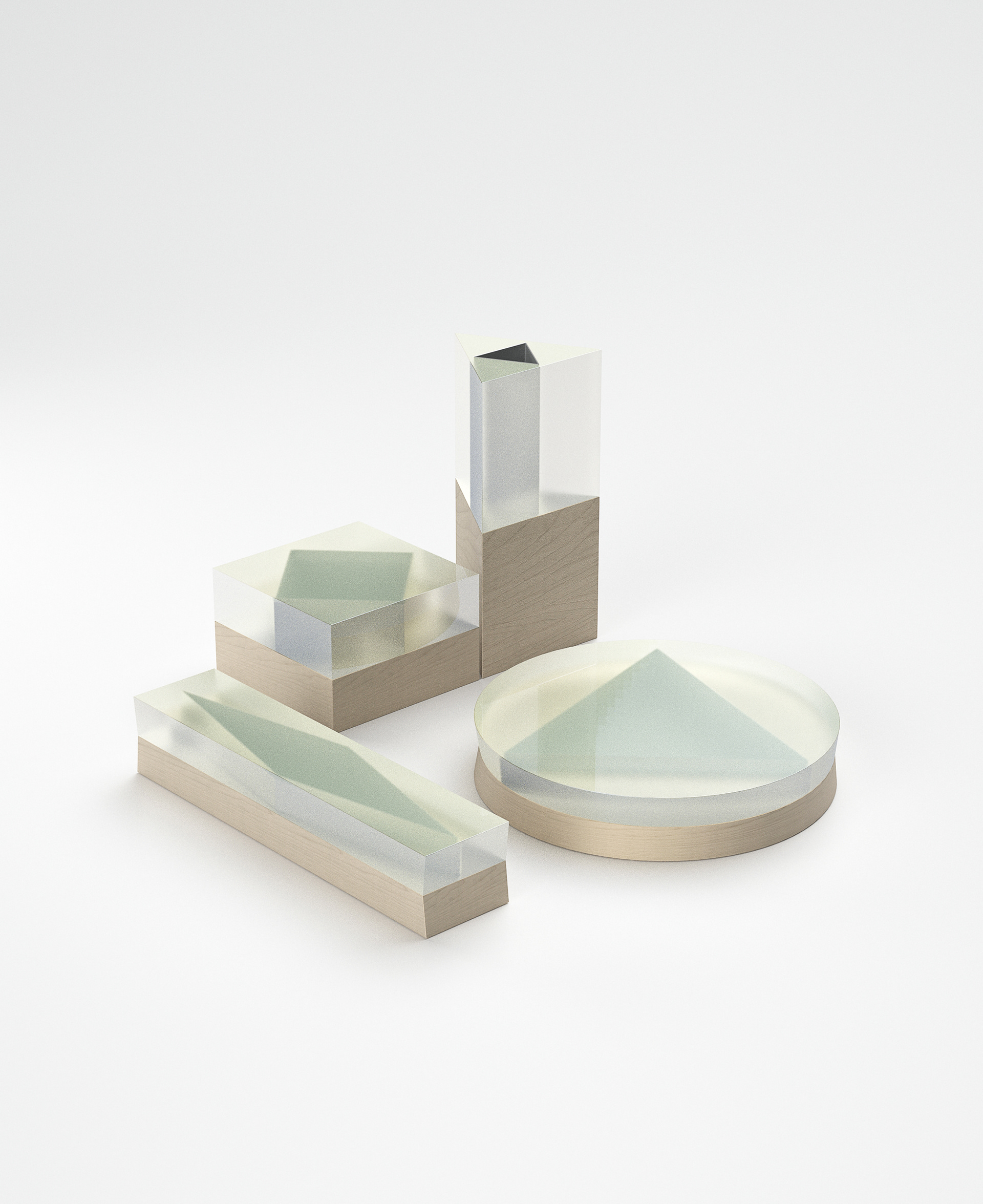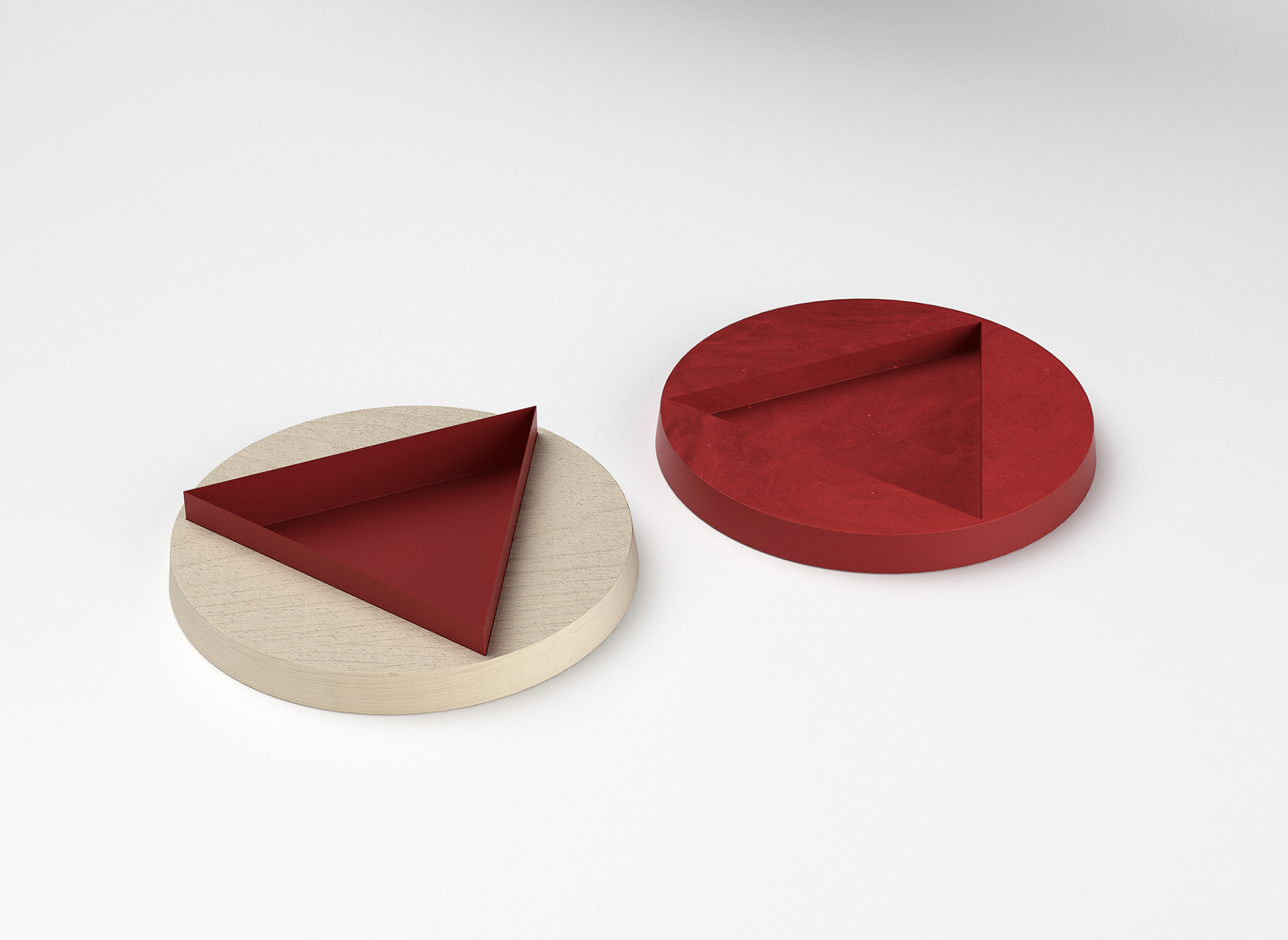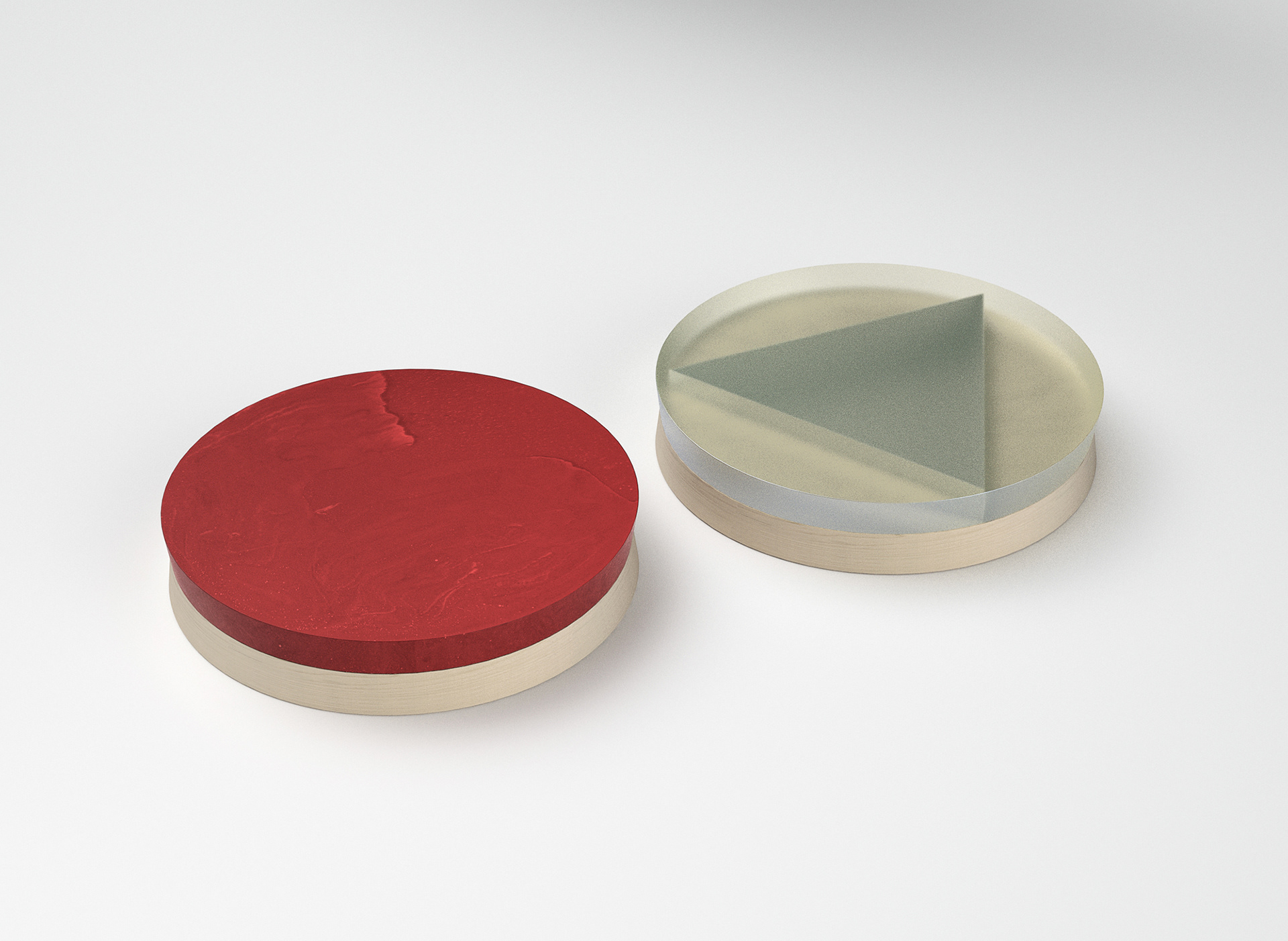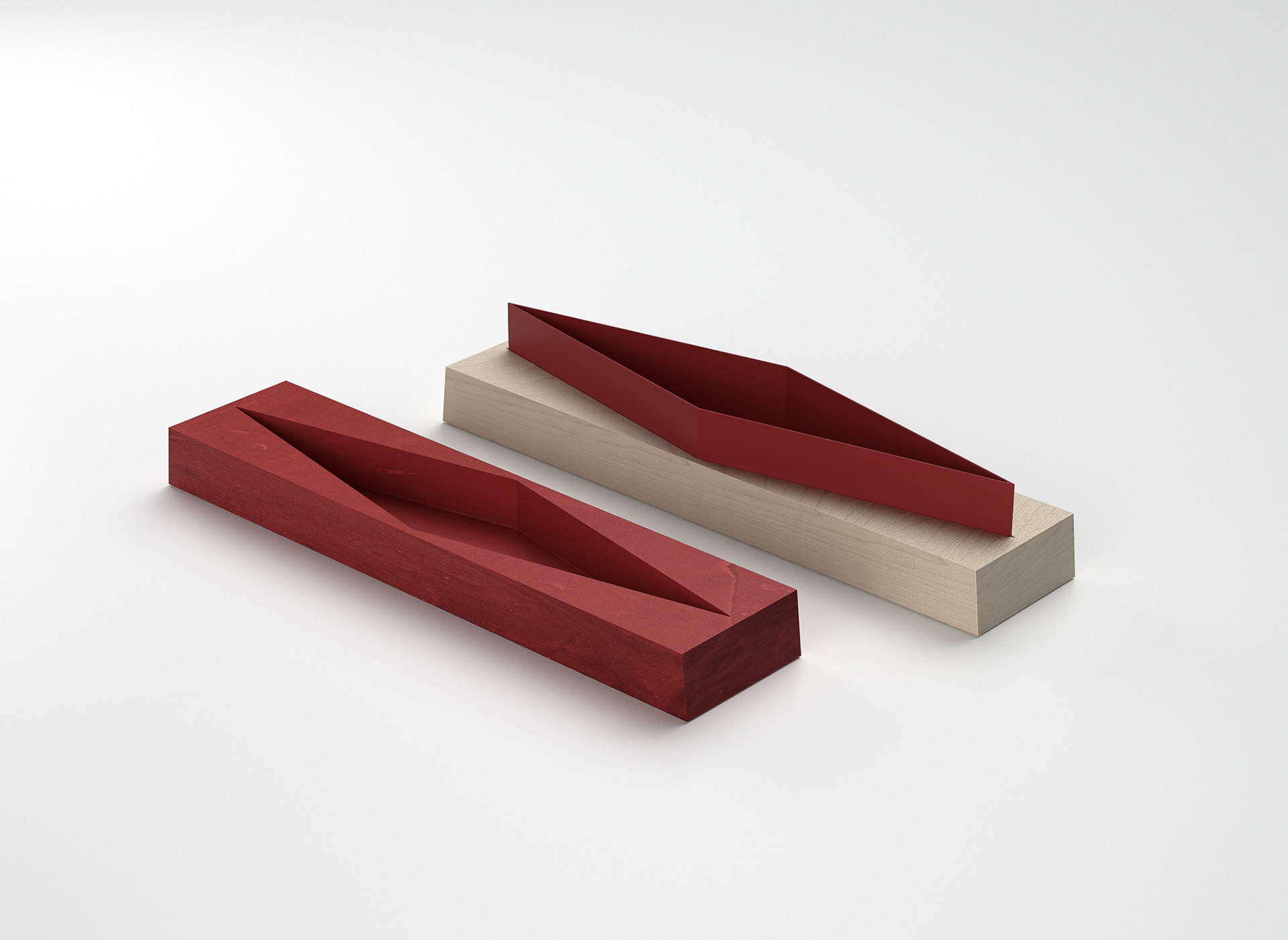“SHADES” is a collection of boxes and vases that plays with the intersection of geometric shapes, the contrast of different materials and finishes, creating a touch sensation and a visual volumetric game. Each item is composed by three elements: two identical pieces, one made of ash and the other of polyurethane mixed with minerals, both contain a frame inside which is made of painted metal. Company: Cotto