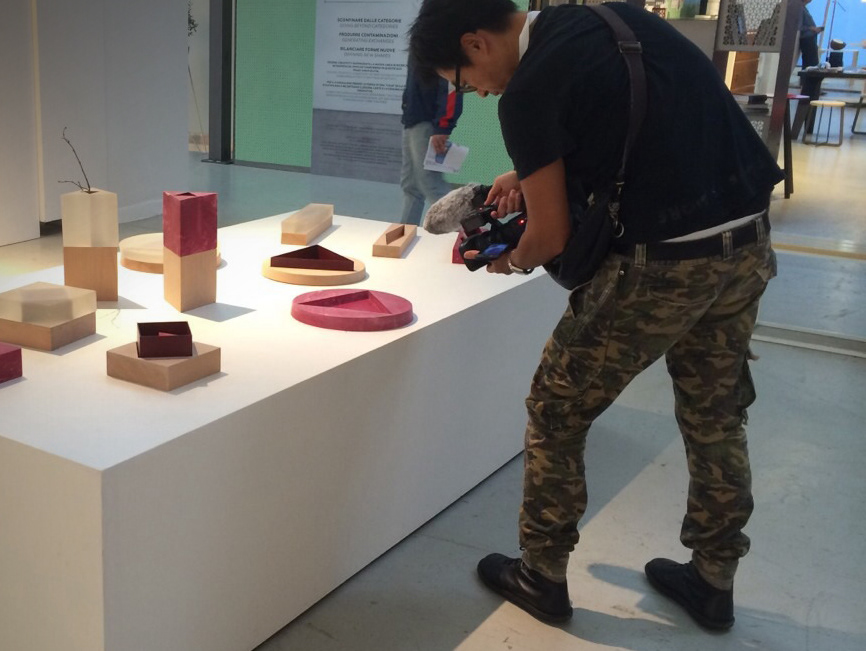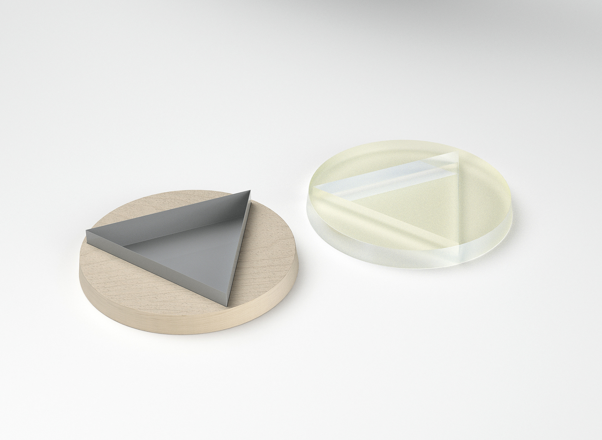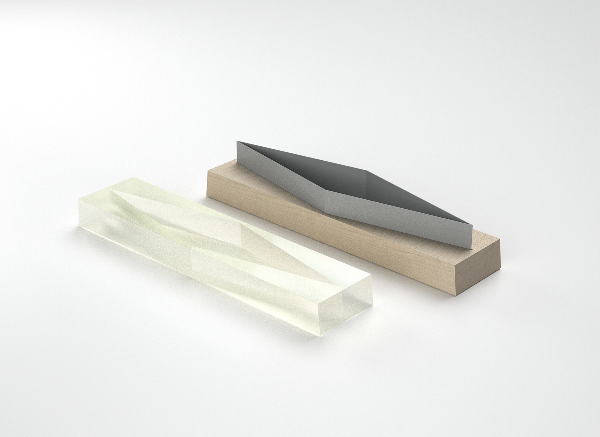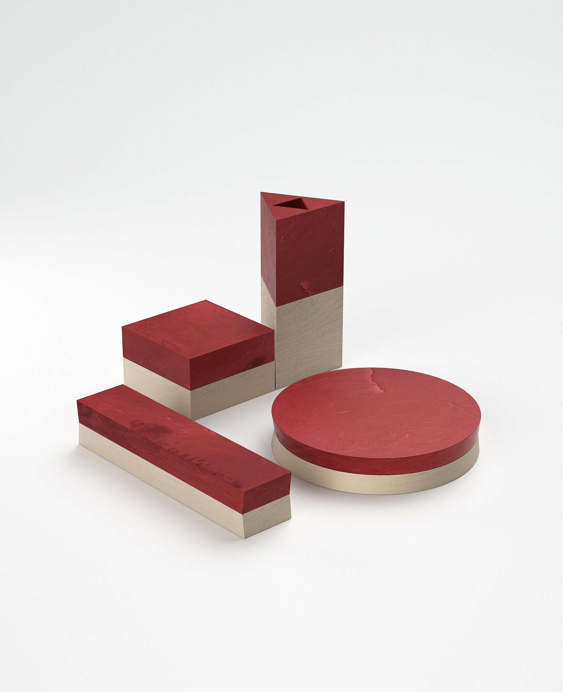 “SHADES” is a collection of boxes and vases that plays with the intersection of geometric shapes, the contrast of different materials and finishes, creating a touch sensation and a visual volumetric game. Each item is composed by three elements: two identical pieces, one made of ash and the other of polyurethane mixed with minerals, both contain a frame inside which is made of painted metal. Company: Cotto