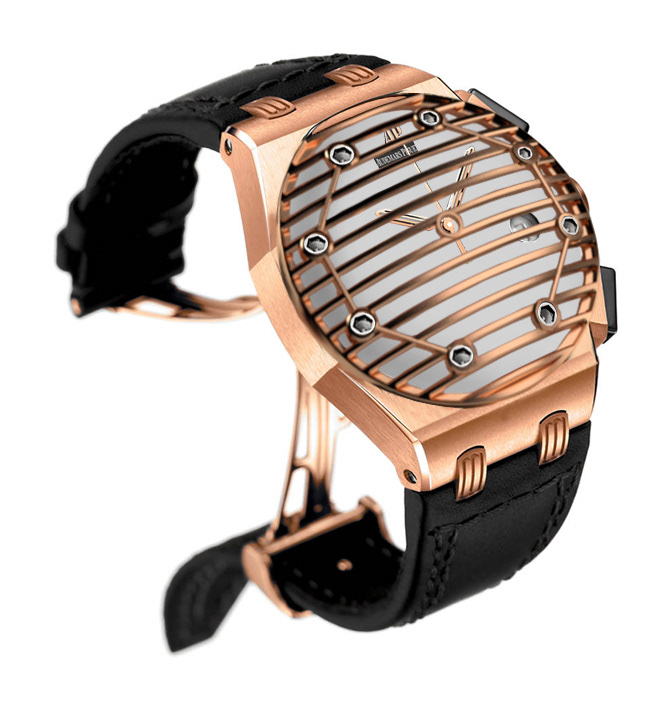 Concept watch based on the protection and the strength of a helmet. Company: Audemars piguet / Ecal